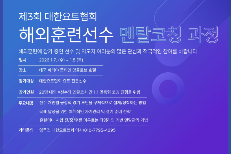 제3회 대한요트협회 해외훈련선수 멘탈코칭 과정 안내