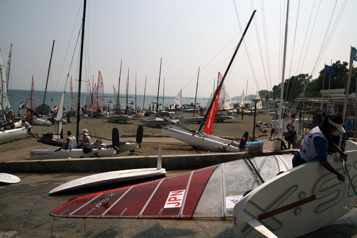 이번 대회의 420과 레이저 래디얼 종목등에는 남/여부의 경기시간을 다르게 하였기에, 경기정도 국가별로 남/여팀에게 한대만 챠터되었습니다. 우리 남/여 선수들이 코치님과 같이 세팅과 튜닝을 실시 하였습니다.