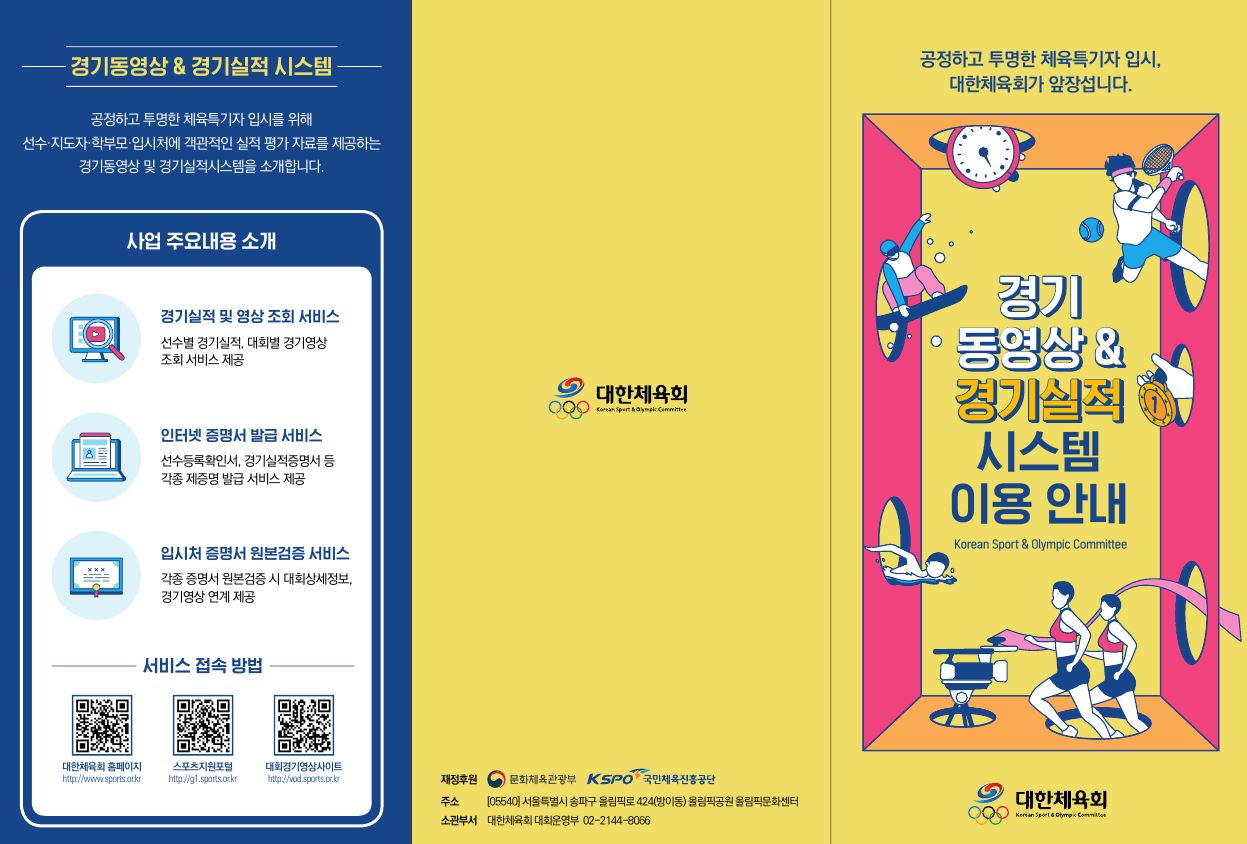 선수별 경기실적, 인터넷 증명서 발급 서비스, 입시처 대상 증명서 원본검증 서비스 등 각종 유용한 서비스가 "스포츠지원포털"사이트를 통해 제공되고 있으니 적극 활용하여 주시기 바랍니다.