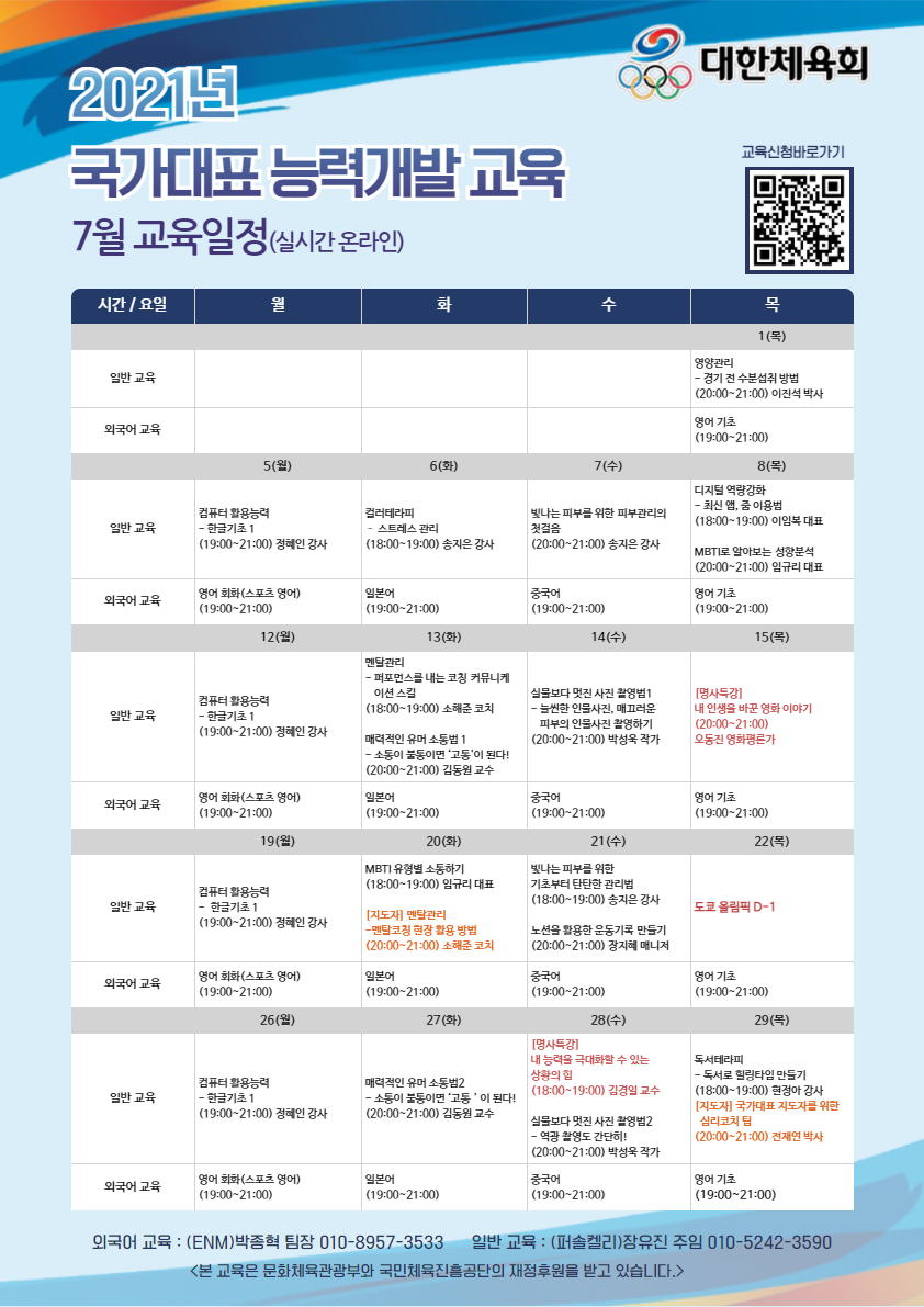7월 국가대표 능력개발 교육 안내 및 홍보